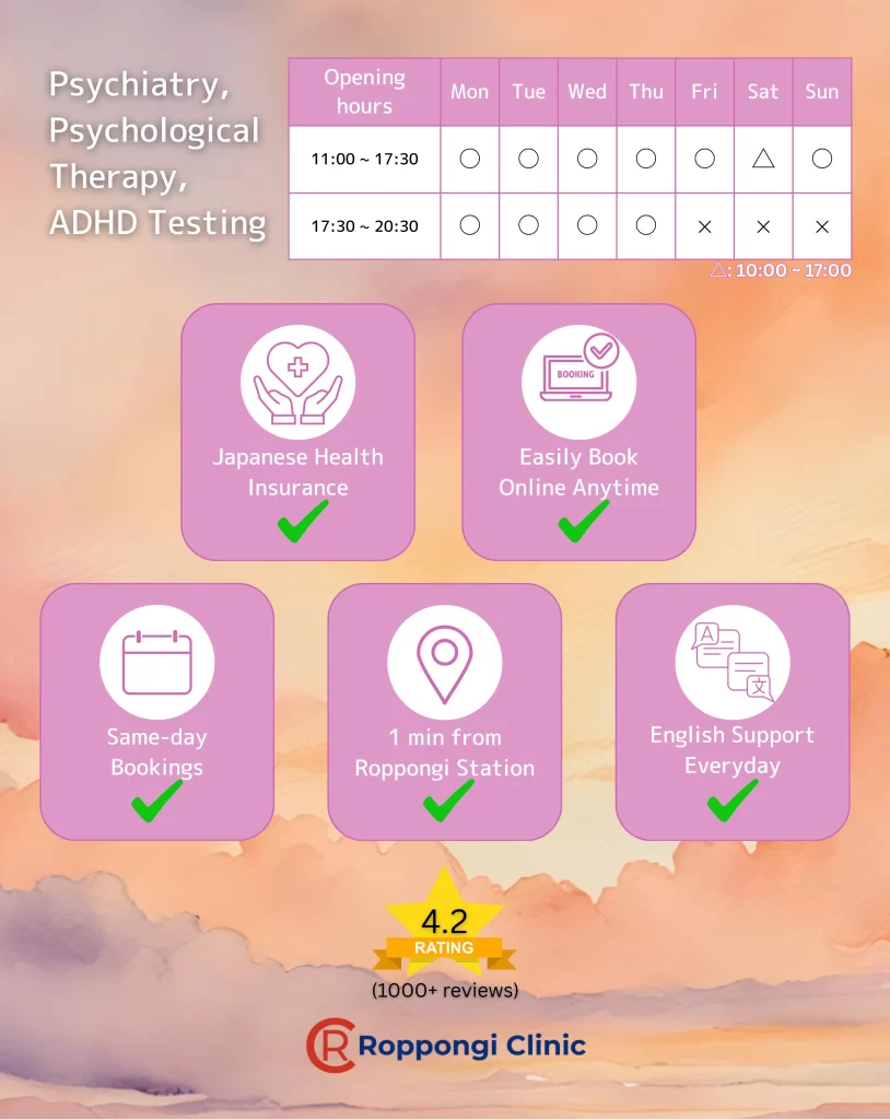 | Name | Roppongi Clinic(Mental Health, Psychiatric Clinic, Psychological Therapy) |